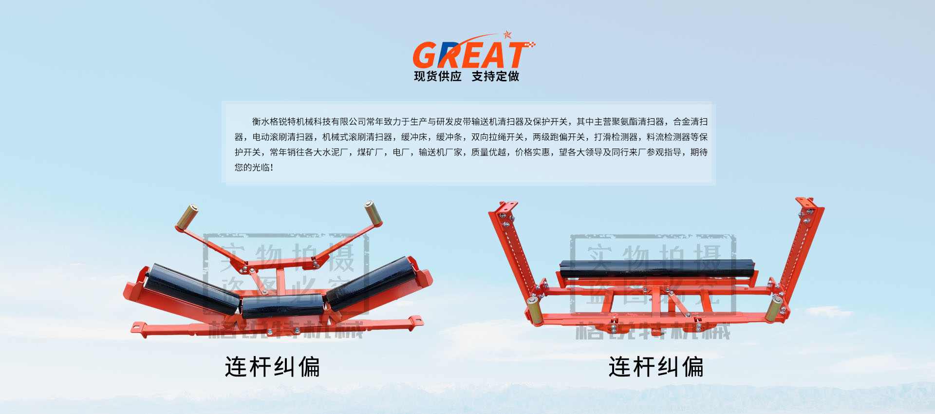 衡水格銳特機械科技有限公司常年致力于生產與研發皮帶輸送機清掃器及保護開關,其中主營聚氨酯清掃器,合金清掃器,電動滾刷清掃器,機械式滾刷清掃器,緩沖床,緩沖條,雙向拉繩開關,兩級跑偏開關,打滑檢測器,料流檢測器等保護開關,常年銷往各大水泥廠,煤礦廠,電廠,輸送機廠家,質量優越,價格實惠,望各大領導及同行來廠參觀指導,期待您的光臨!!!